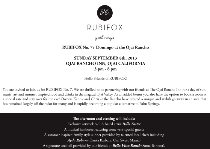 Currently creating a print for the upcoming Rubifox dinner party, Sept. 8th in Ojai! You can book here: http://rubifox.com/